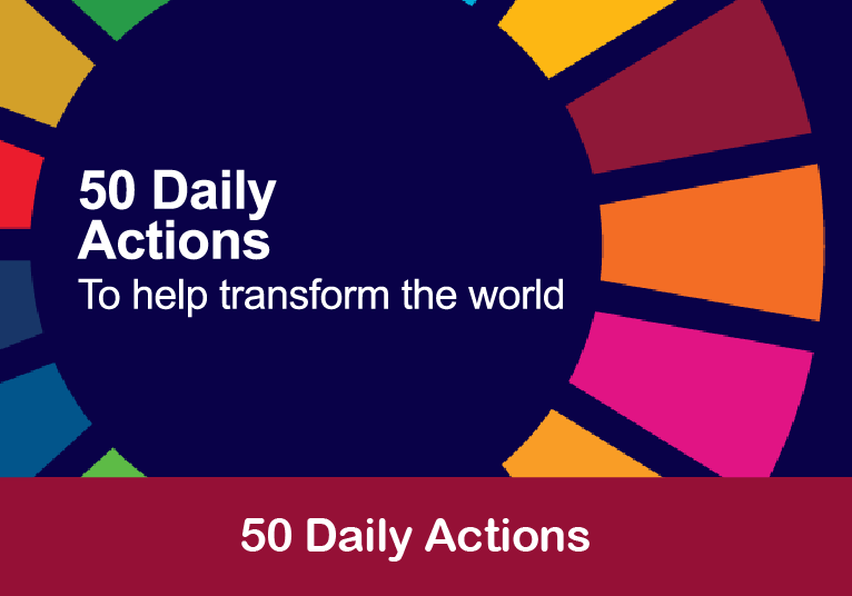 Also the 50 Daily Actions lists ideas for actions that we can all take in our daily lives to support the Sustainable Development Goals.